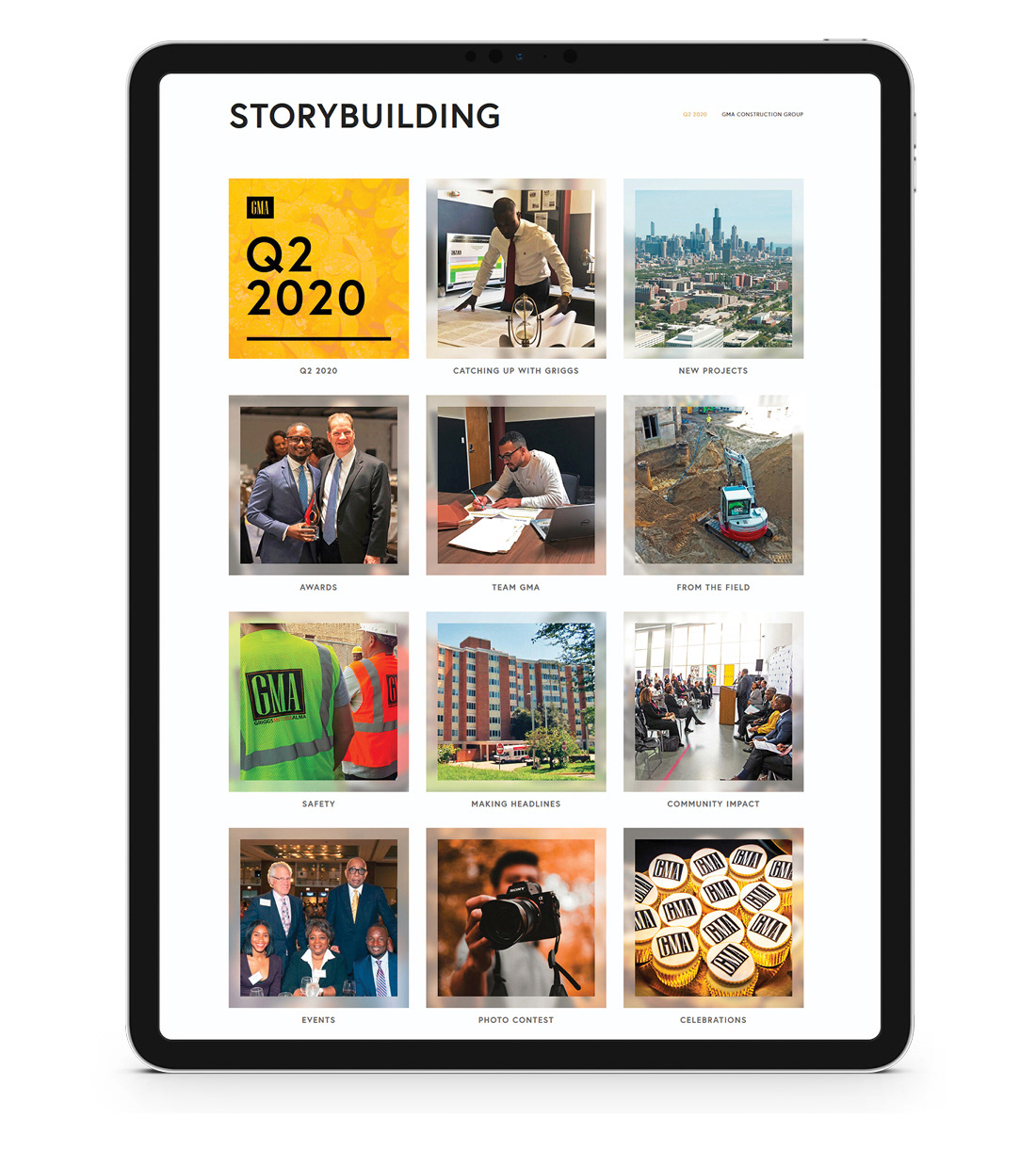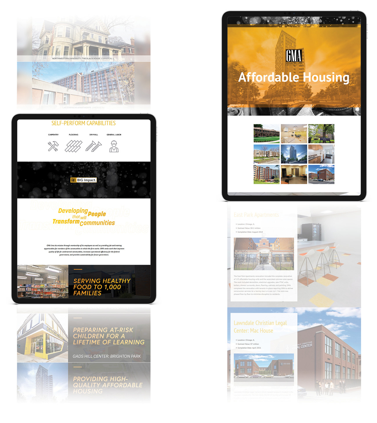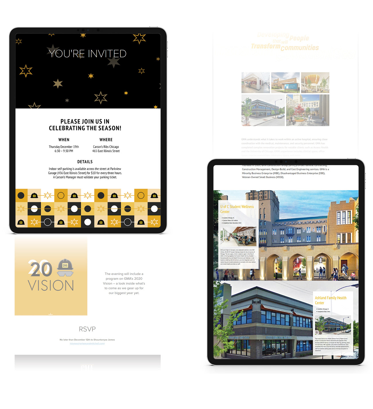 GMA's Quarterly Company newsletter along with various Spark websites for their annual internal events and sectors in which they perform.