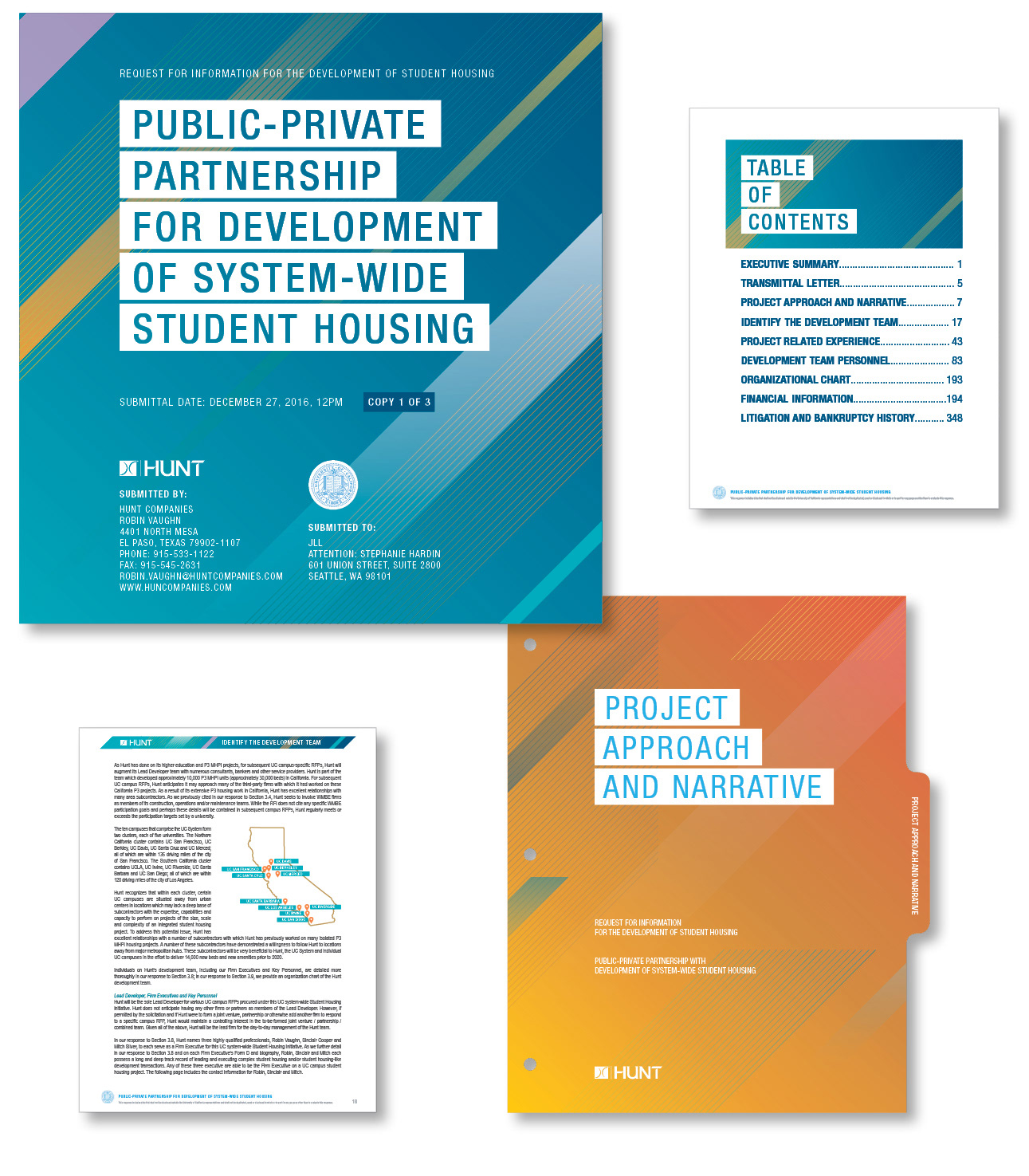 Art direction for the University of California Student Housing P3 proposal for the Hunt Companies.